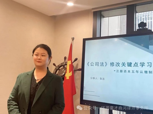 春雨落,百谷生,这是希望的雨,是滋润大地的雨。2024年4月19日,在“谷雨”时节,山东环周豪才(商河)律师事务所召开第一期集思畅谈法治沙龙,本次沙龙主题为“《公司法》修改要点之注册资本五年认缴制”,山东环周豪才律师事务所监事长杨志娟出席本次会议,本次分享由张洁律师主讲。