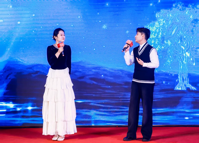 互动环节氛围热烈,趣味游戏大家踊跃参与,尽显才智与默契。备受期待的抽奖活动将晚会推向高潮,六十余份丰厚礼品逐一送出,惊喜连连,欢声迭起,全场充满了喜庆与欢乐气氛。